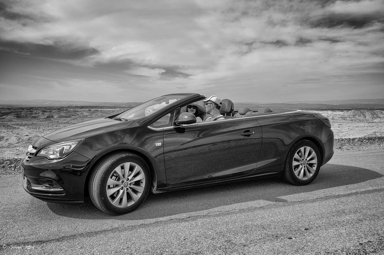 את האווירה הנעימה קוטע צלצול טלפון. סבא ג'ק שעל הקו מערים שאלות: "לא קר לכם עם גג פתוח"? למען האמת, לא קר באופל הפתוחה. יש חימום (וגם קירור) לכיסאות וכיוונו את המזגן לרגליים בעוצמה גבוהה. הדבר היחיד שמפריע הוא סירקולציה של רוח בין המושבים. לכן לבשנו חולצות ארוכות והגברנו את עוצמת החימום. כשהחזרתי את הקסקדה לסוכנות, גיליתי שבתא המטען היה מאוחסן מגן ייעודי בדיוק למטרה זאת. חבל שלא ידענו.