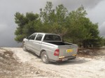 הכבישים המהירים של כביש החוף כבר מאחורי. השטח לפני. צמיגי הכביש של הטנדר כובשים את השביל בדרך לגבעה 186 שבהר חורשן. גם כאן הקצב טוב ואפילו מפתיע לטובה. בכמה קטעים מהירים, שבהם רוב רכבי השטח מתחילים לאבד קשר עם הקרקע ומבקשים להאט את המהירות, האקטיון המשיך להשרות בטחון ולאפשר לי לשמור על קצב מהיר ומהנה. חבל שדווקא כאן השהיית הטורבו נעשית מוחשית יותר ומפריעה, בעיקר כאשר אני מבקש את הכוח ביציאות מהסיבובים לטובת החלקות זנב מהנות.